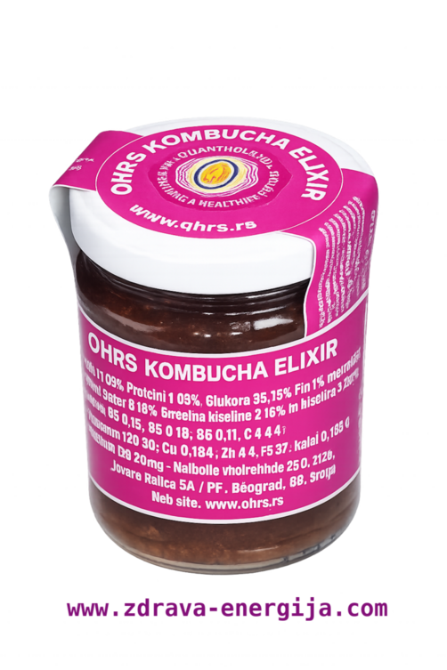 QHR EKSTRAKT je potpun o prirodan proizvod dobijen od pravilno fermentisane kombuha-tečnosti primenom posebne opreme i pod posebnim fizičko-hemijskim uslovima. Ekstrahuju se najvažniji produkti fermentacije komguha-tečnosti, odstranjuje se voda, viđak sirćetne kiseline i svi aktivni mikroorganizmi. Tako se dobija stabilan preparat s drugim vekom trajanja. QHR EKSTRAKT od kombuhe dejstvuje deset puta jače i brže od komguha-tečnosti. QHR EKSTRAKT od kombuje sadrži L-mlečnu kiselinu, jednu od najjačih antikancerogenih supstanci i glukoronsku kiselinu koja je glavni čistač krvi. Ovu kiselinu, koja se prirodno stvara u jetri, možemo naći jedino u kombuha-tečnosti. Proizvod je bogat vitaminima B1, B2, B6, C i nijacinom.